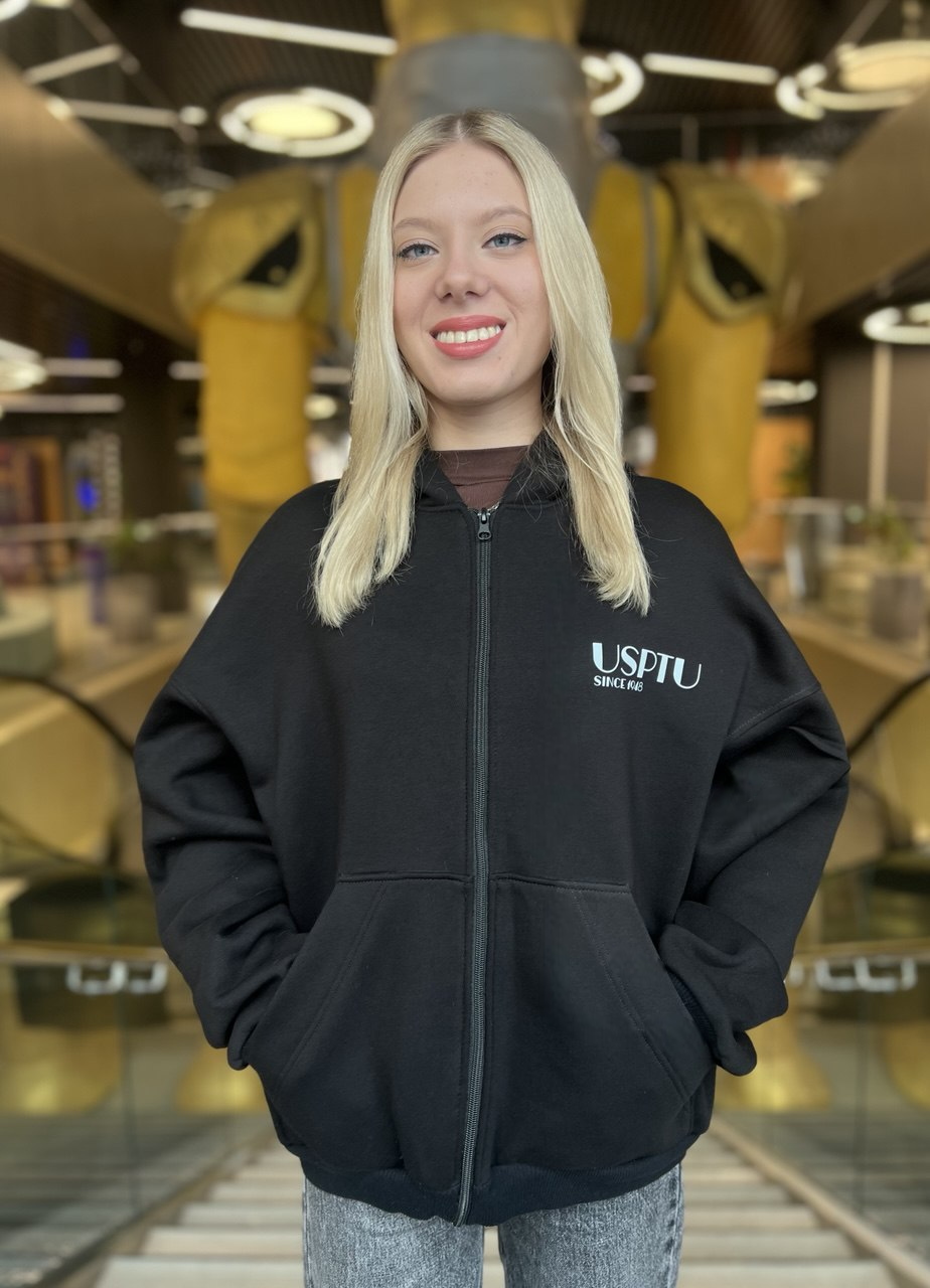 - уход: машинная стирка при 30°C, вывернув наизнанку. Не отбеливать. Гладить при средней температуре, избегая области принта и вышивки.